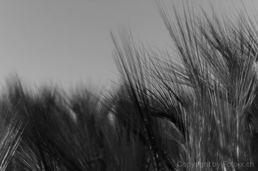 Wie der stachelige Pelz eines Tieres sehen diese Weizenähren aus. In Schwarz-Weiss gewinnt das Foto eine neue Möglichkeit dazu: auch etwas anderes sein zu können.